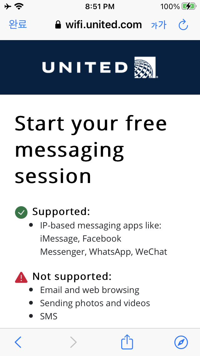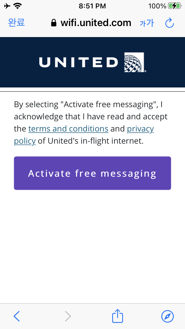 유나이티드 (United) 기내 인터넷으로 카톡 사용하기
